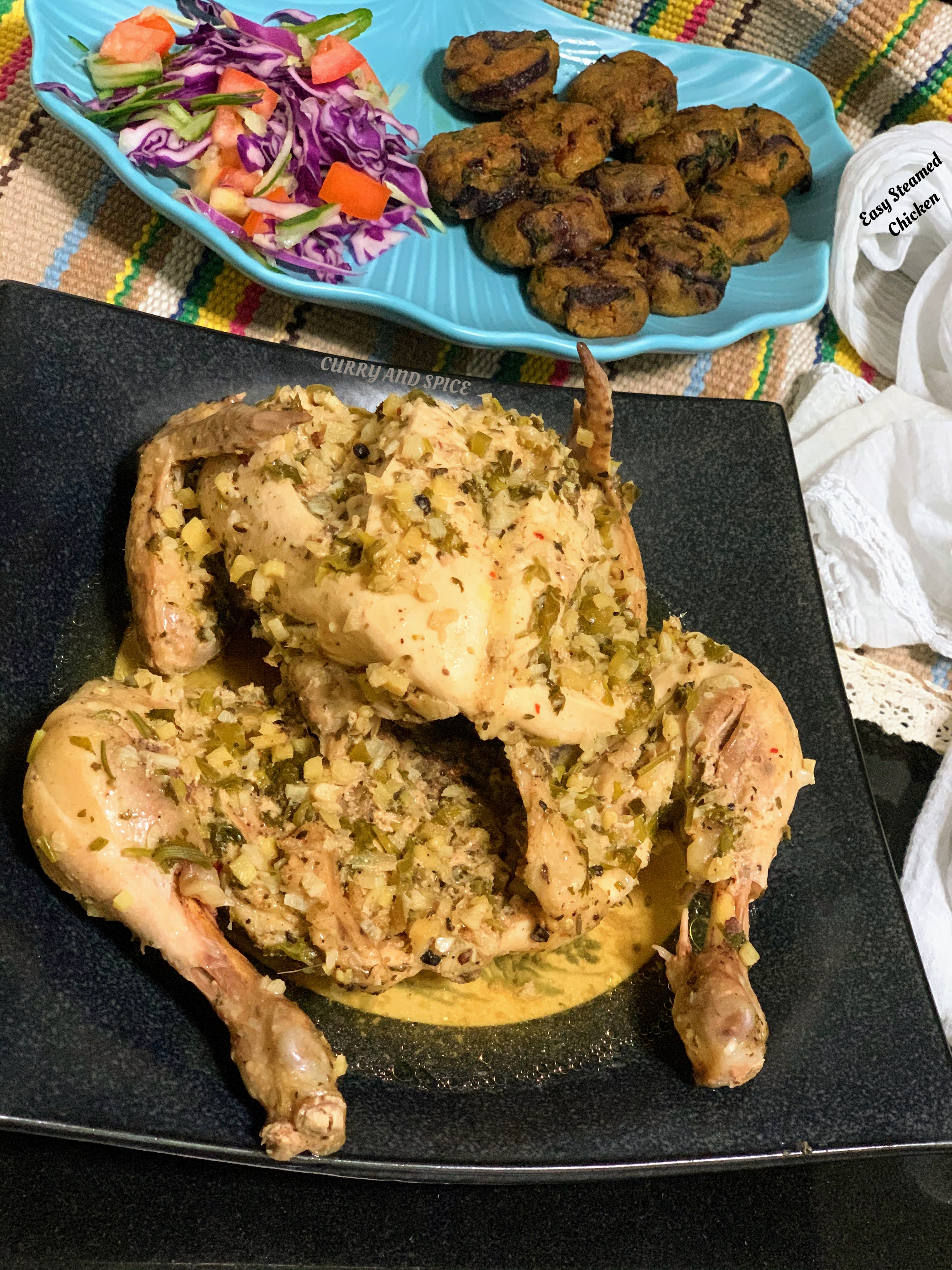 Cristine has become a part of the family, at times I cook Filipino dishes listening from her! The South East Asian palette suits her but she loves our food except our sweets! She is extremely fond of porota, luchi! She & her Sir refuse gluten-free flours! Some days I would cook a minimally marinated fish or chicken this way to give her the taste of home! She eats Filipino food every Sunday; I am happy that she does not make a noise when I serve her panchmeshali torkari which my man, son & brother consider as inedible! This EASY STEAMED CHICKEN is a simplistic, non-vegetarian lean meat recipe! It has been marinated with the basic spices & fresh herb coriander, cooked in manual steamer. I can guarantee there would be no smell of raw chicken! I do not know what else the Orientals use in the marination, they eat a lot of herbs & sauces I am clueless about! To make this chicken dish gluten-free use wheat-free soy sauce, I cannot prescribe a vegan version of it! The islanders prepare tofu this way, I like but my men won't touch! Yesterday night, I cooked tofu in a way the islander would term as a murderous attempt at their tofu! We all loved it is what matters!